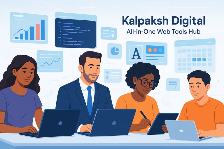 Welcome to Kalpaksh Digital – All-in-One Web Tools Hub. Whether you're a student, businessman, employee, or lifelong learner, our personalized web app tools are designed to meet your unique needs. From productivity boosters to learning aids and business solutions, Kalpaksh Digital empowers you to work smarter, faster, and better – all in one place.